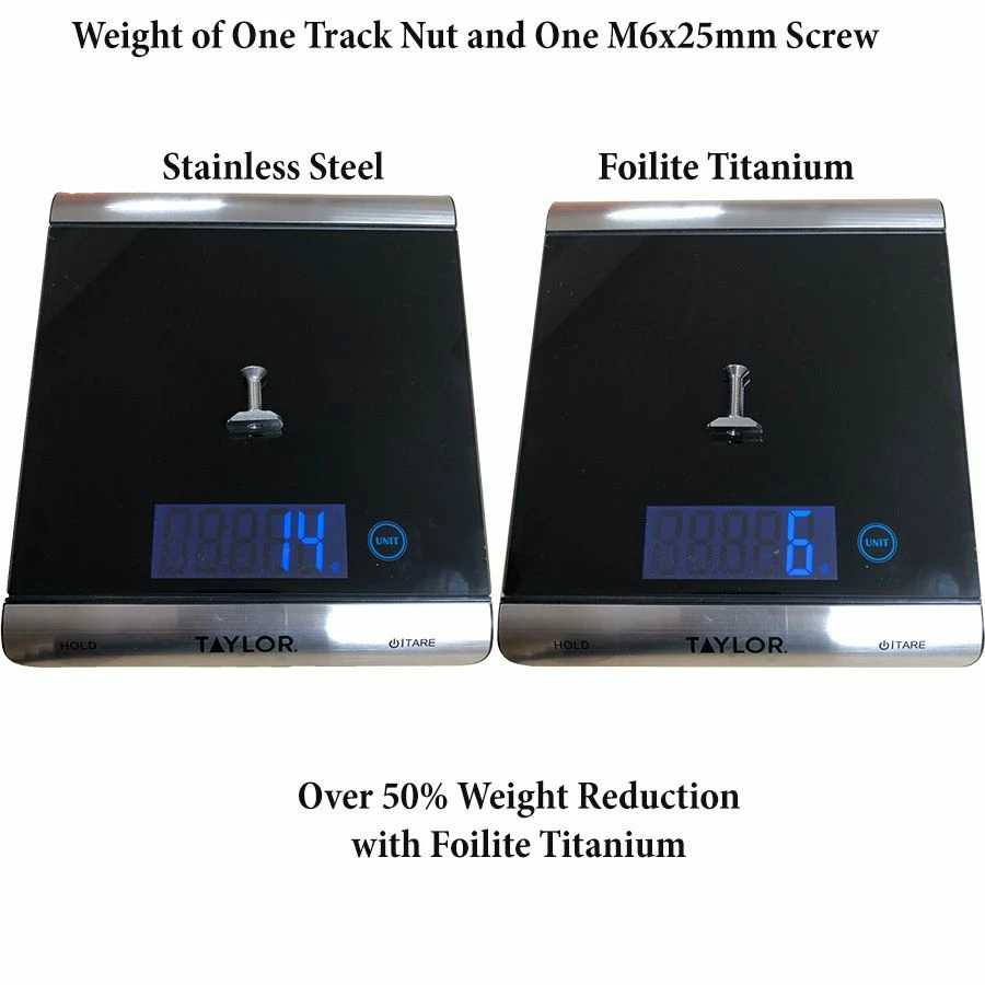 Foilite – M6 Titanium Hydrofoil Hardware Set – 4 Track Nuts and 4 M6 Screws