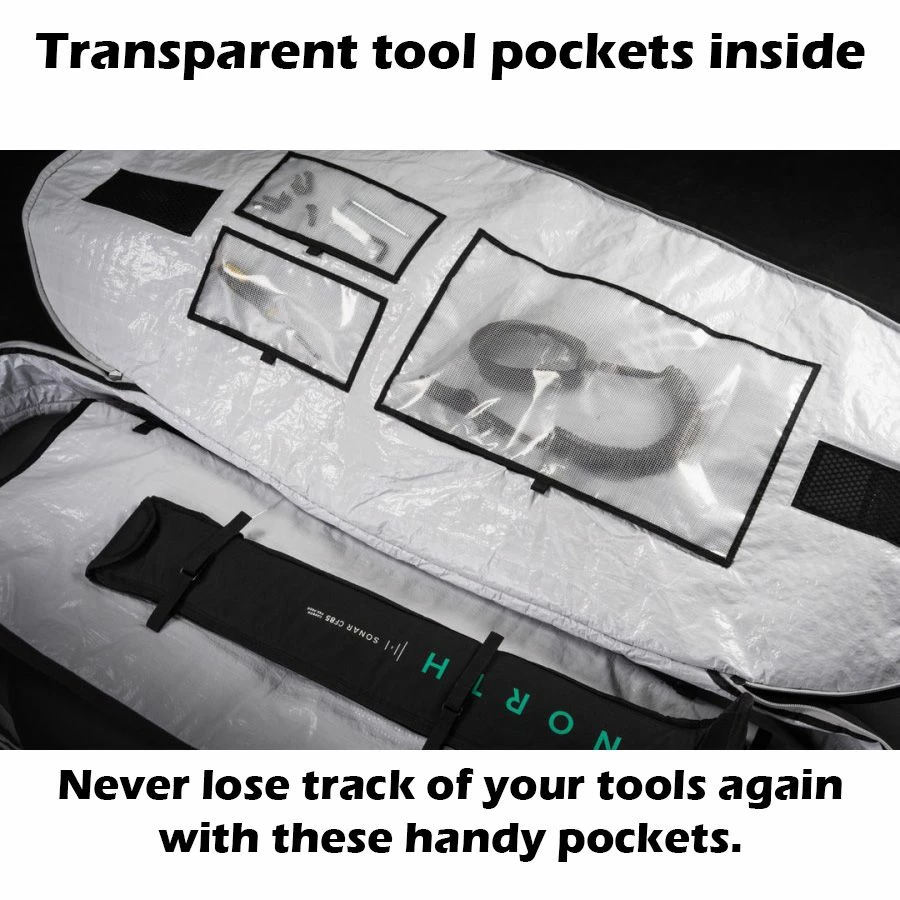 Wingboarding is an investment and the Star Wingboard Boardbag  will protect your investment from dings, dents, and too much sun while transporting or waiting for the wind to come up. A sturdy construction with carrying handle for easy transportation and heavy duty zippers to ensure easy access and closure. If things are getting heavy you can take a rest and put down your bag on the floor without having to worry your goods get damaged. The 8mm padding will Help prevent damage and offer your board a cushy ride to and from the water. Keep everything protected and in place with these removable pockets. If you want to save some weight you can always leave them out. The Extra large air vents integrated in the fabric will help keep your gear in the best condition, even when it’s still wet.