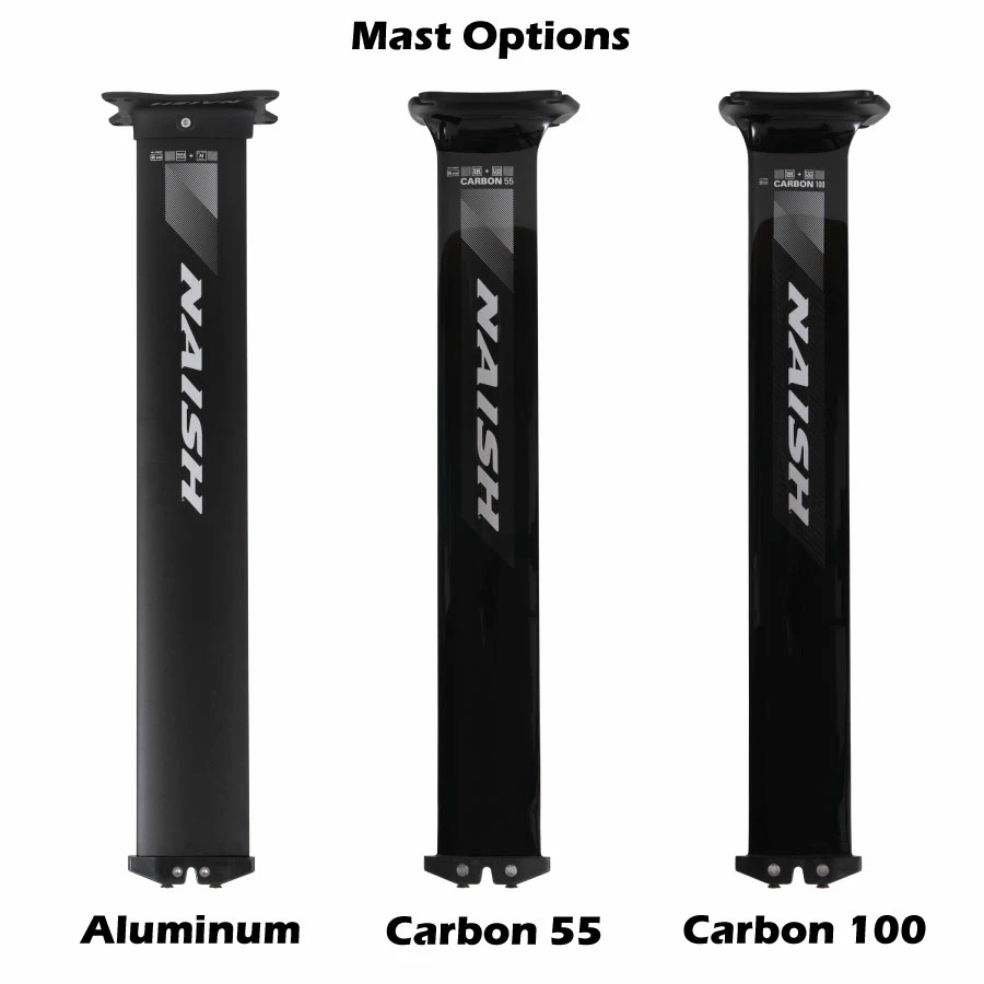 - The new Naish C100 monocoque carbon mast is the pinnacle of cutting-edge engineering and design, offering unparalleled performance benefits. Crafted with a combination of 3K and UD carbon fibers, it provides superior bending and torsional rigidity while achieving a ?direct drive? feel for maximum control. Additionally, its dual expanding foam core allows for an exceptionally light weight build that enhances speed and control while preventing corrosion thanks to the integration of (2) 12 mm stainless steel inserts laminated into the mast structure as well as a molded fuselage connector which serves as a protective barrier against corrosion.
