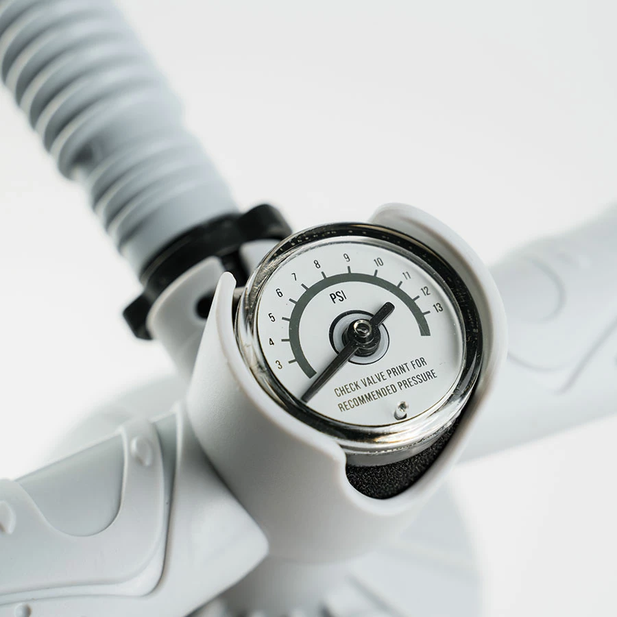 The calibrated pressure gauge accurately guides you to reach the recommended correct pressures for each of our products.