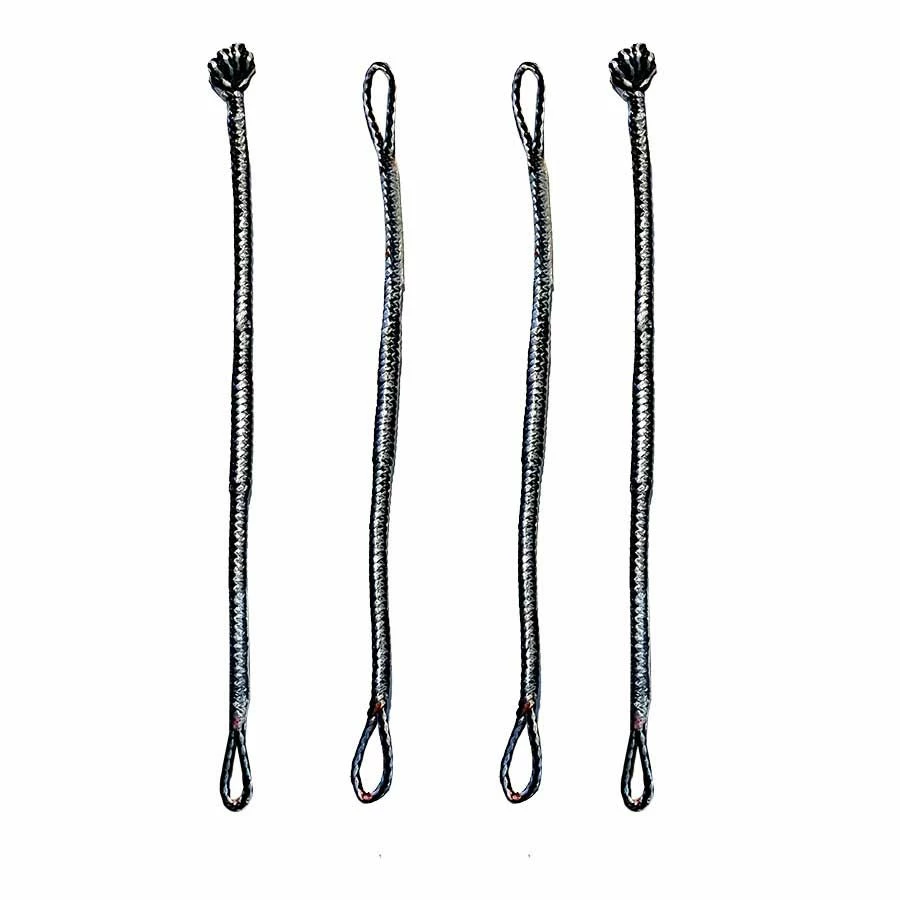 Ozone replacement pigtails for a 4-line kite. These pigtails connect to the bridle lines coming off the kite and allow you to hook up your flying lines. Always check kite pigtails for wear and tear.