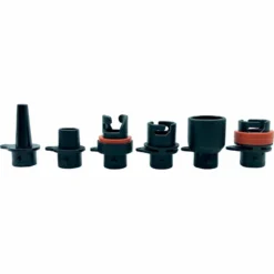 *NOTE* – This adapter set was built to fit newer model heavy duty pump hoses (2016 and newer.) The adapter does also fit older model pump hoses (prior to 2016) very tightly but does not lock in like standard OEM adapters. The adapter can be used as is or modified by filing down the tiny nub near the ridge of the adapter allowing it to lock in to the pump hose like OEM adapters. The exception to this is the Cabrinha Airlock 1 Screw Valve Pump adaptor which fits both newer heavy duty hoses and old hoses without any modification.Â