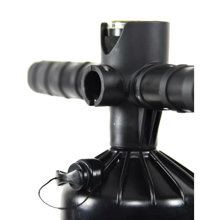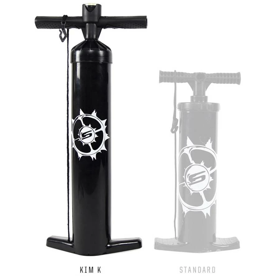 Slingshot Kiteboarding Kite Pump. Newly engineered seals and pistons combined with newly molded handle and feet offer improved ergonomics and inflation speed. Single to double-stroke inflation switch allows for instant change from high-volume / low-pressure inflation to low-volume / high-pressure. Comes standard with kite tether and hook, kite-tuned Slingshot pressure gauge, integrated sand filter, premium high-flow and extra-durable hose, and the two extra kite nozzles to fit most most kites on the market. Dual action makes pumping a breeze.